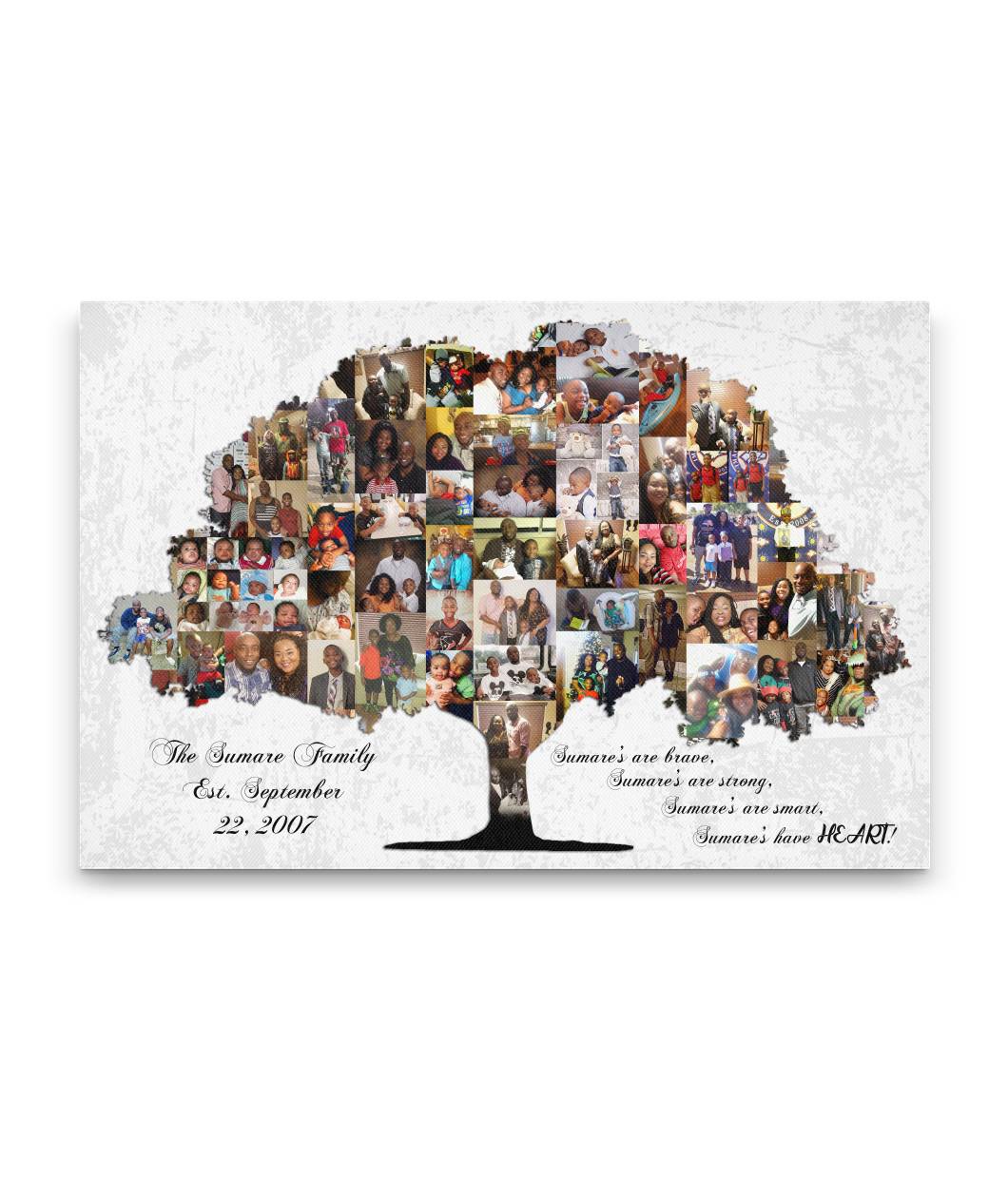 Traje esto para mi mamá y agregué fotografías antiguas de los años 70 y 80. Quedó genial, incluso las fotos antiguas salieron bastante claras. El material de la lona es de buena calidad.